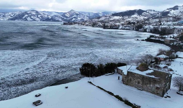 Yaz aylarında yeni evlenecek çiftlerin düğün fotoğrafı çekimlerinde ilk sırada yer alan yarımada, kış mevsiminde ise eşsiz bir görüntüye kavuştu. Ortaya çıkan eşsiz güzellik, Ordu Büyükşehir Belediyesi ekipleri tarafından dron ile kaydedildi.