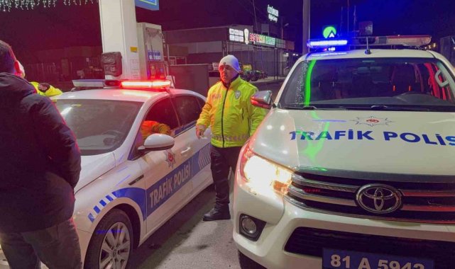 Düzce'de yol uygulaması esnasında polisin dur ihtarına uymayan sürücü, polis memuruna çarpıp kaçtı. Kazada polis memuru ağır yaralanırken, araç olay yerinden 10 kilometre uzaklıkta yakalandı.