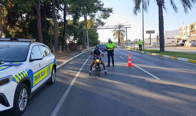 Antalya'nın Manavgat ilçesinde trafik polislerinin gözlerinin önünde motosikletin önünü kaldıran ve 'dur' ihtarına uymayan motosiklet sürücüsü 200 metre ileride kaza yaptı. Kaza yapan motosikletli yaralanmasına rağmen olay yerinden kaçtı. Trafik polisi tarafından bağlanan motosiklete 42 bin 908 TL ceza uygulandı.