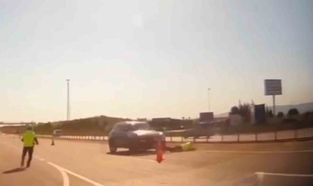 Öte yandan, alkollü olduğu öğrenilen sürücünün, polise çarpıp kaçtığı anlar araç kamerasına yansıdı.