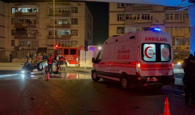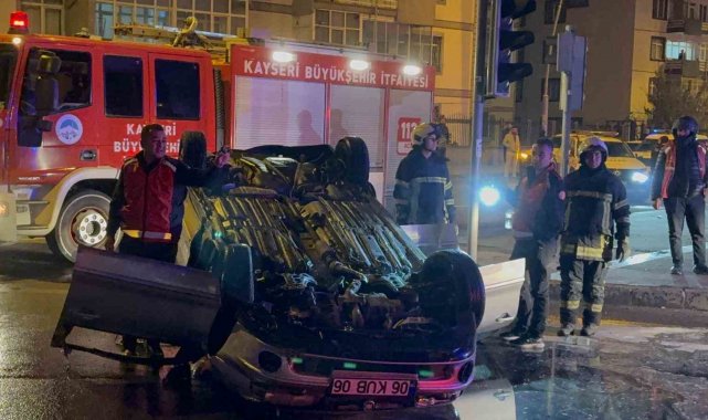 Kayseri'de polis ekiplerinin 'dur' ihtarına uymayarak, kaçan otomobil kovalamaca sırasında kontrolden çıkarak takla attı. Kaza sonrası alev alan otomobil söndürülürken, kaçan 2 şahıs yaralandı.