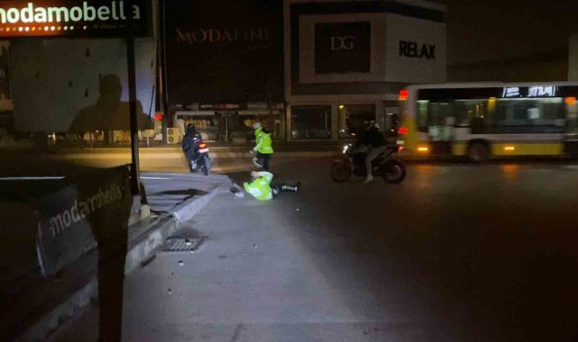 İnegöl Emniyet Müdürlüğü Trafik Büro Amirliği ekipleri Perşembe akşamı Mahmudiye Mahallesi Ertuğrulgazi Caddesi motosiklet sürücülerine yönelik uygulama yaptılar. Uygulama sırasında polis ekipleri 2 motosikletin sürücüsüne dur ihtarında bulundular. Polis ekipleri, dur ihtarına uymayarak hızlanan motosikletleri durdurmaya çalıştılar. Durmayarak hızlanan motosikletlerden biri trafik memuru M.A.'yı yere düşürerek başından yaralanmasına neden oldu.