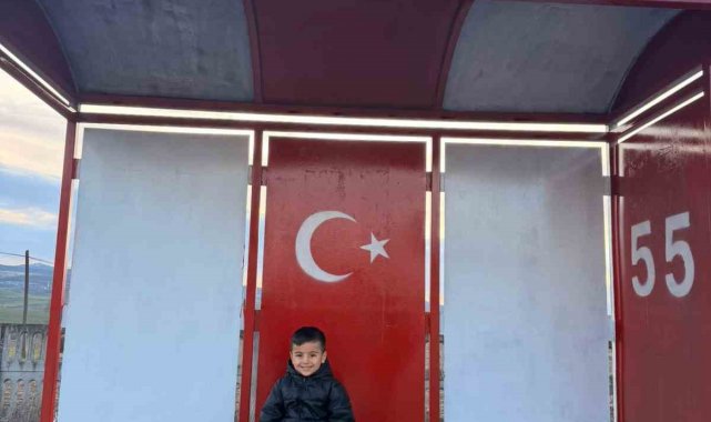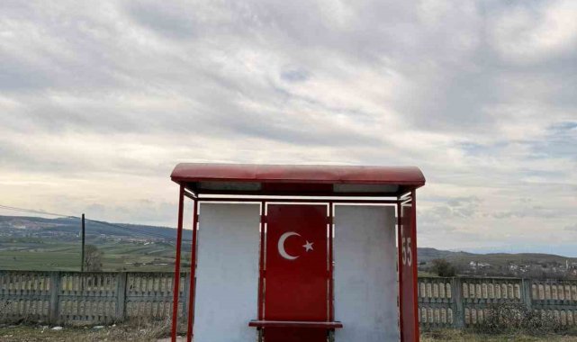 Samsun'un Ladik ilçesinde paslanan duraklar, bir ailenin gönüllü çalışmasıyla Samsunspor'un kırmızı-beyaz renkleriyle yenilendi.