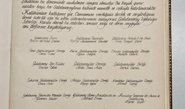 Galatasaray Başkanı Dursun Özbek, Galatasaray Lisesi anı defterinin kıymetli olduğunu söyleyerek, "Mustafa Kemal Atatürk'ün burada ziyareti sırasında imzaladığı bir defter. Büyük devlet başkanlarının mektebimizi ziyaret ettiği zaman imzaladığı bir defterdir. Galatasaray İşbirliği Kurulu ve Galatasaray camiasının, Galatasaray'a verdiğim hizmetlerden dolayı bana hitaben yazdığı mektup vardı. Mektubun bir suretini de bana verdiler. Duygusal bir an yaşadım" dedi.