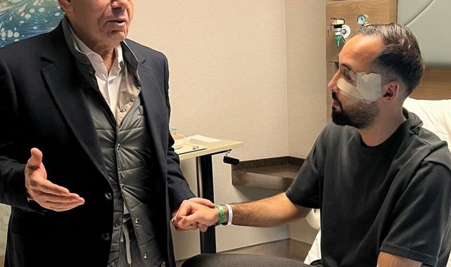 Galatasaray Başkanı Dursun Özbek, İstanbulspor Başkanı Ecmel Faik Sarıalioğlu ile birlikte sarı-siyahlıların kalecisi İsa Doğan'ı hastanede ziyaret etti.