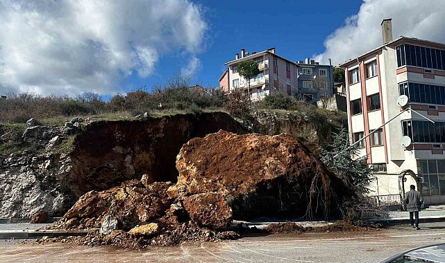 Balıkesir'in Dursunbey ilçesinde dev kaya parçası topraktan ayrılarak yaya kaldırımı üzerine düştü. Yol yek taraflı olarak trafiğe kapatıldı ve sürücüler uyarıldı.