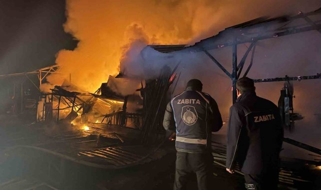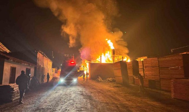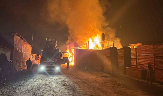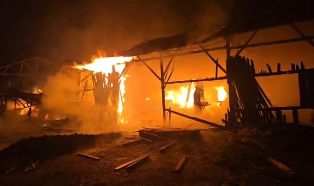 Dursunbey'de kereste deposunda yangın