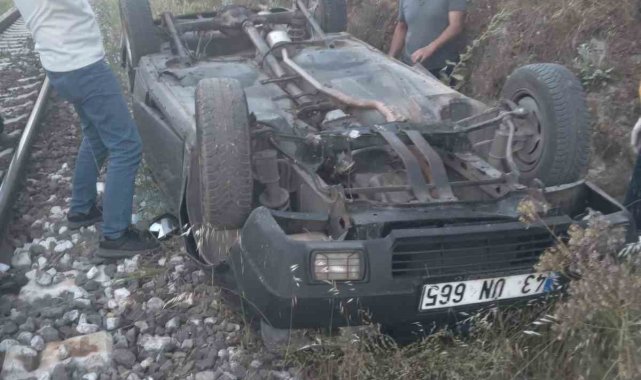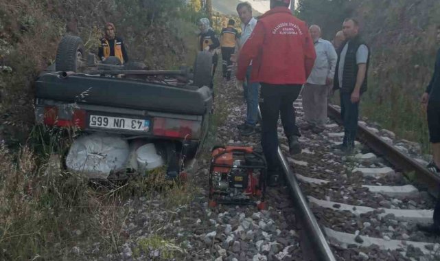 Dursunbey'de otomobil şarampolden tren yoluna uçtu