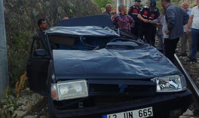 Balıkesir'in Dursunbey ilçesinde otomobil, şarampolden tren yoluna uçtu. Otomobilin sürücüsü itfaiye ekipleri tarafından bulunduğu yerden yaralı olarak çıkartılarak, sağlık ekiplerine teslim edildi.