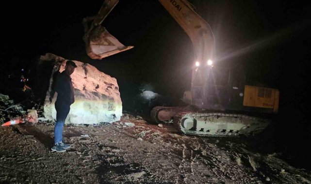 Düşen dev kaya karayolunu ulaşıma kapattı