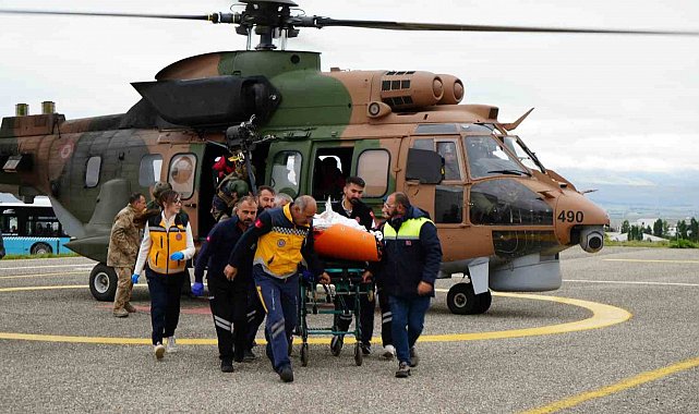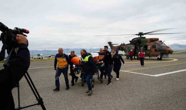 Düşen uçakta ağır yaralanan kadın yolcu, helikopter ile Erzurum'a getirildi