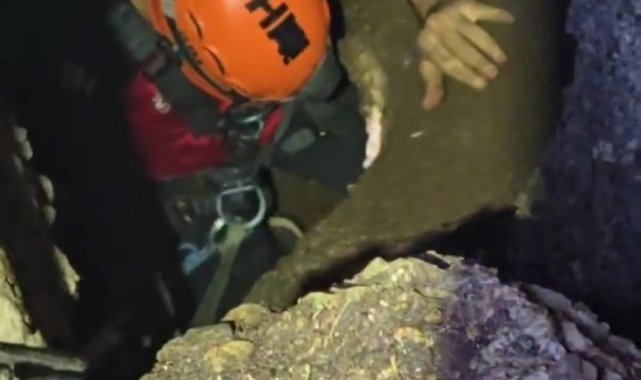 Düştüğü mağarada 3 gün mahsur kalan keçiyi kurtarma ekipleri çıkardı