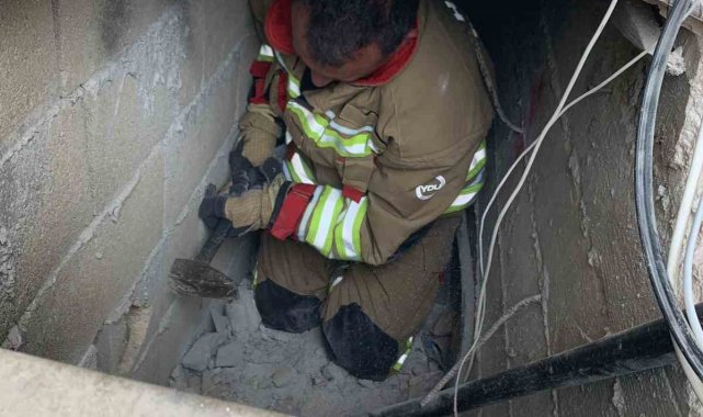 Hatay'ın Samandağ ilçesinde duvarda sıkışarak mahsur kalan yavru kedi, itfaiye ekiplerinin duvarı kırmasıyla kurtarıldı.