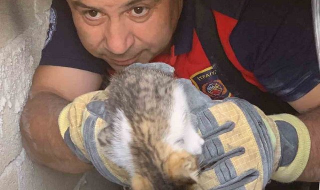 Samandağ ilçesi Deniz Mahallesi'nde yavru kedi, duvar arasında sıkıştı. Duvar arasında mahsur kalan kediyi gören vatandaşlar durumu 112 Acil Çağrı Merkezi'ne bildirdi. İhbar üzerine olay yerine Hatay Büyükşehir Belediyesine bağlı itfaiye ekipleri sevk edildi. Kısa sürede bölgeye gelen itfaiye ekipleri, duvarı kırarak hummalı çalışmayla kediyi kurtardılar. Sağlıklı şekilde kurtarılan yavru kedi, beslenerek doğal yaşam alanına bırakıldı.