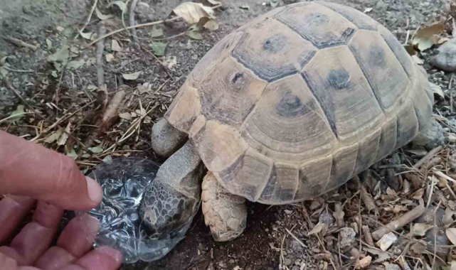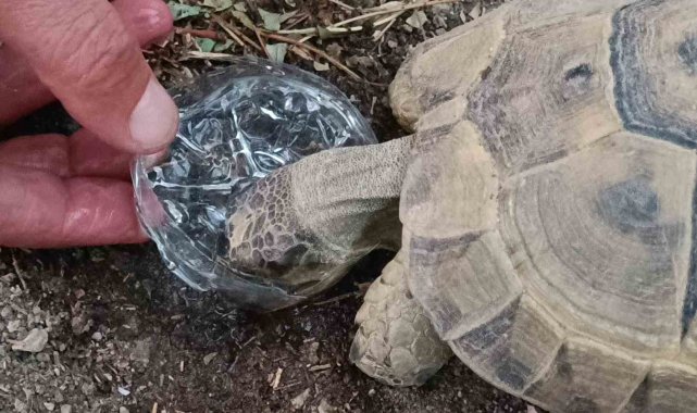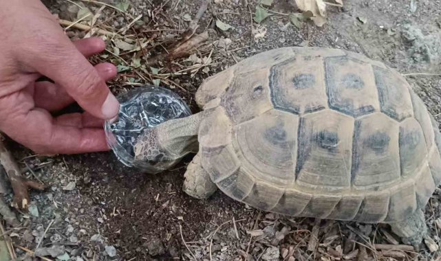 Duyarlı vatandaştan yüreklere dokunan hareket: Kaplumbağaya gözyaşları içinde su içirdi