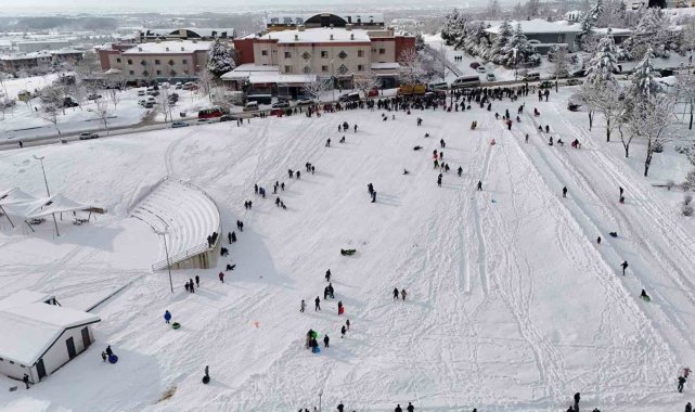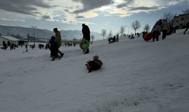 Tatili fırsat bilen çocuklar ise "Karda oynamaya geldik. Çok eğleniyoruz" ifadelerini kullandılar.