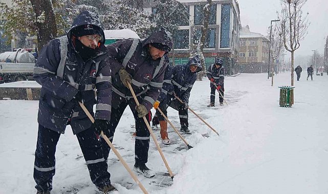 DÜZCE(İHA) –Düzce'de etkisini artıran yoğun kar yağışı nedeniyle Düzce Belediyesi ekipleri sahadaki çalışmalarına aralıksız devam ediyor.