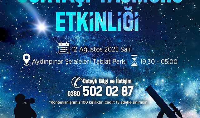 Gökbilim meraklılarının her yıl heyecanla beklediği Perseid meteor yağmuru, bu gece en yüksek yoğunluğuna ulaşarak gökyüzünde unutulmaz bir manzara sunacak. Düzce Belediyesi de bu geceye özel etkinlik hazırladı.