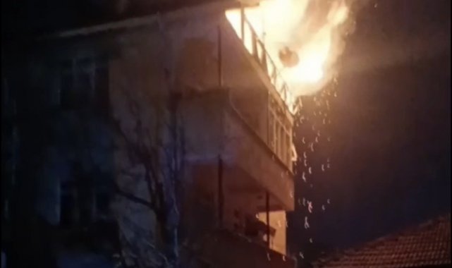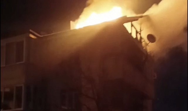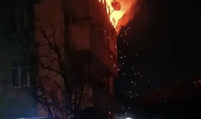Düzce'de 3 katlı binanın çatısı alev alev yandı