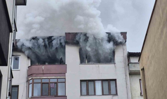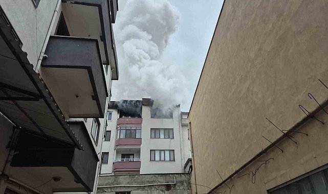 Düzce(İHA) – Düzce şehir merkezinde 5 katlı binanın en üst katında çıkan yangında 2'si çocuk 3 kişi dumandan etkilendi.