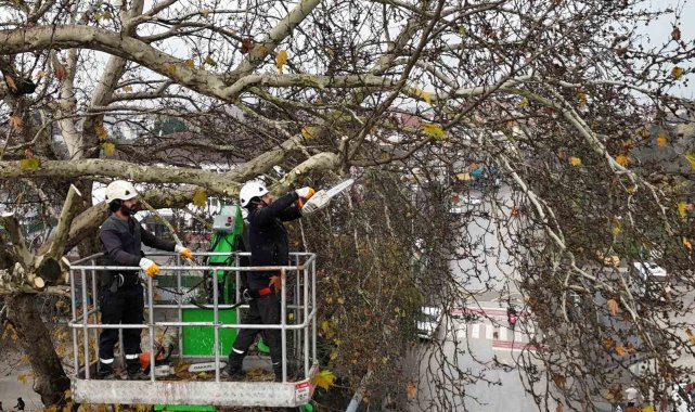 Düzce Belediyesi, kış bakımları kapsamında ağaçları budama çalışmalarına devam ediyor. Park ve Bahçeler Müdürlüğü, bu çerçevede belirlenen ana arterler üzerinde bulunan ağaçların budamasını gerçekleştiriyor.