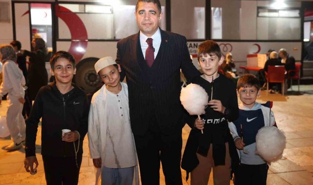 Vali Selçuk Aslan'da çocuklarla birlikte bal şerbetinde içti, çocuklarla sohbet etti.