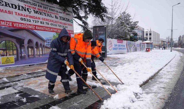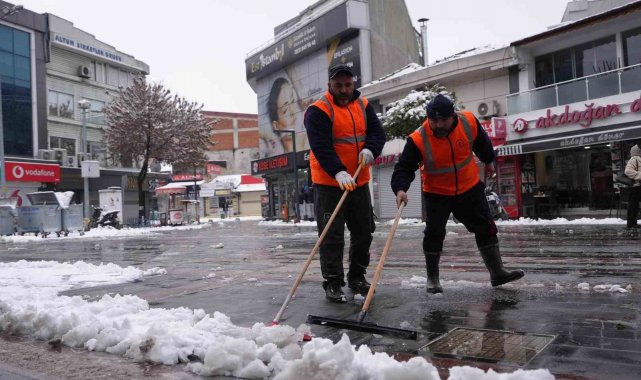 Düzce'de belediye ekipleri kar yağışıyla birlikte sahaya indi