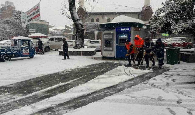 DÜZCE (İHA) – Düzce Belediyesi ekipleri şehir merkezinde etkili olan kar yağışıyla birlikte sahaya indi. Ana arterler ve ara sokaklarda kar küreme çalışmaları devam ederken, sürücülerin ise dikkatli olmaları istendi.