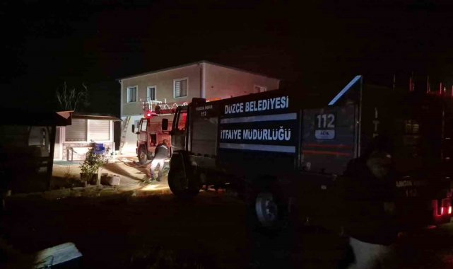 Düzce'de bir evde yangın çıktı: Alevler geceyi aydınlattı