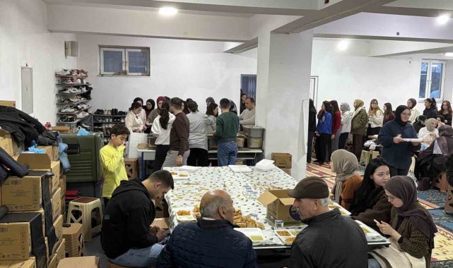 Düzce'de cami cemaati öğrencilere iftar veriyor