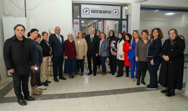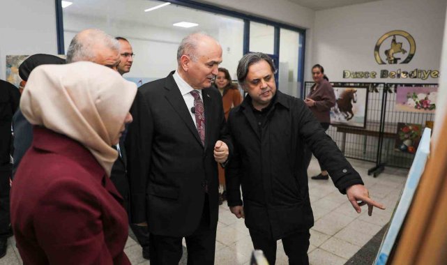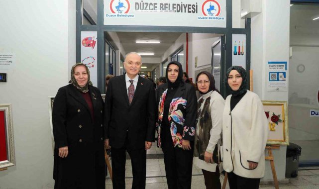 Sergi alanını gezerek kursiyerlerle sohbet eden Faruk Özlü, Düzce'yi sanat ve spor şehrine dönüştürmek için önemli projelerin hazırlandığını belirterek "Sizin için güzel bir fuaye alanı yapıyoruz. Şehrin merkezinde olacak burası ve sergilerinizi daha güzel bir ortamda yapacaksınız. Bu bahsettiğim yer Millet Bahçesi 2 alanı. Orada bir okul var, Çıraklık Eğitim Merkezi tam merkezde. Biz istiyoruz ki; eski sanayi taşınıyor, o okulu da taşıyalım. Okulun yerine bir konser salonu ve fuaye alanı yapmak istiyoruz. Biz zaten Beltaş Sanayi Sitesi mevkiinde okul için yer ayırdık. Bu tip fuaye ve sergi alanlarının merkezde olması lazım. Şehrin genişlemesi, büyümesi, cazibe merkezi olması, sanat ve spor faaliyetlerinin etkin olması lazım. Ne yapıyorsak daha güzelini yapmak için çalışıyoruz. Durursak geride kalırız, o yüzden durmak yok çalışmaya devam" dedi.