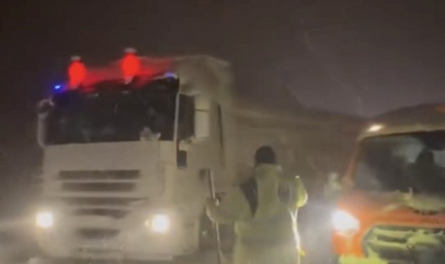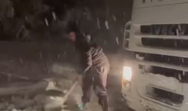 D-655 karayolu Kabalak mevkiinde yolda kalan araçlara müdahale etmek için bölgeye giden bir çekici kara saplandı. Kardan aracın çıkartılması için bölgede ki vatandaşlar müdahalede bulundu. O anlar cep telefonu kamerasına yansıdı.
