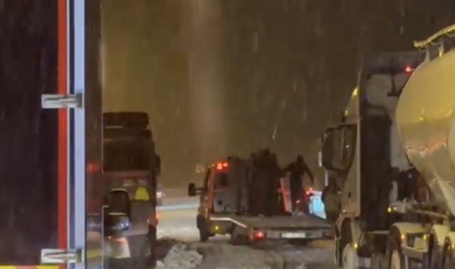 Bolu Dağı'nda etkili olan yoğun kar yağışı ulaşımı olumsuz etkiledi. Bolu istikametinde seyir halinde olan bir tır, kayganlaşan yolda kontrolden çıkarak makasladı. Kaza nedeniyle yol trafiğe kapanırken, bölgede uzun araç kuyrukları oluştu. İhbar üzerine olay yerine polis, karayolları ve kurtarma ekipleri sevk edildi. Ekipler, tırı bulunduğu yerden kaldırmak ve yolu yeniden ulaşıma açmak için çalışmalarını sürdürüyor.