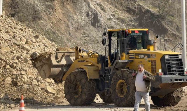 Düzce'de 5 köyü birbirine bağlayan Samandere yolunda heyelan meydana geldi. 1 saatlik çalışmanın ardından yol kontrollü olarak trafiğe açılırken, ekiplerin çalışmaları devam ediyor.