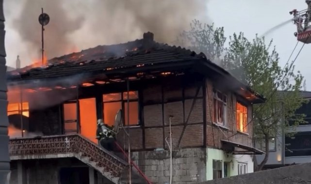 Düzce'de iki katlı evde çıkan yangın itfaiye ekiplerince söndürüldü. Korku dolu anlar yaşatan yangında alevlere teslim olan evin üst katı kullanılamaz hale geldi.