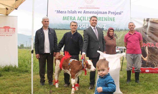 Mera açılışında konuşan Düzce Valisi Selçuk Aslan, Düzce'nin sanayi kimliğinin yanında güçlü bir tarım ve hayvancılık potansiyeline de sahip olduğunu vurguladı. İlde 52 bin civarında büyükbaş, 18 bin civarında küçükbaş hayvan bulunduğunu belirten Aslan, hayvancılıkta en büyük girdi olan kaba yemin yaklaşık üçte birinin meralardan karşılandığını ifade etti. Selçuk Aslan, "Bu oranı yüzde 50'ye çıkarmayı hedefliyoruz. Meralarımızın yüzde 65'i ıslah edilmiş durumda. Bugüne kadar 90 milyon TL'yi aşan bir kaynak meralarımızın ıslahı için kullanıldı. Ancak bu alanların sürdürülebilirliği, çiftçilerimizin dikkatli ve özenli kullanımı ile mümkündür" dedi.