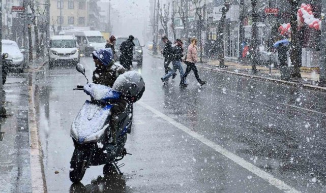 DÜZCE (İHA) – Düzce'de etkili olan kar yağışıyla birlikte kent merkezi beyaza büründü.
