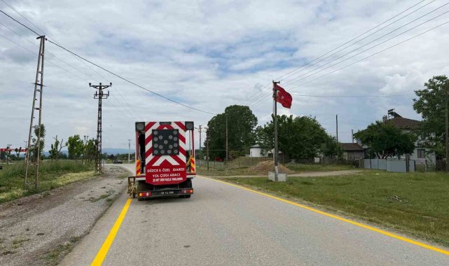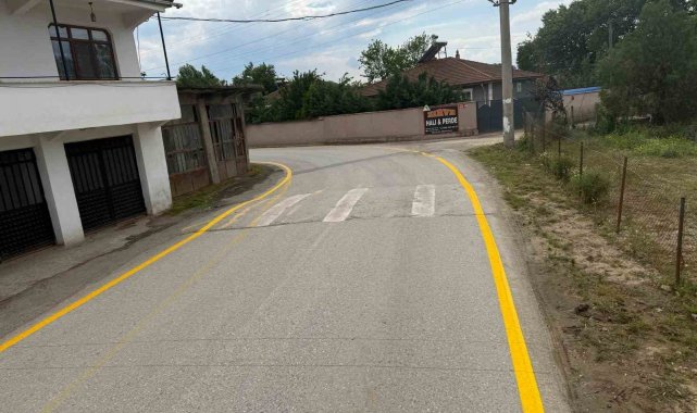 Düzce'de köy yollarında yol çizgileri yenilendi