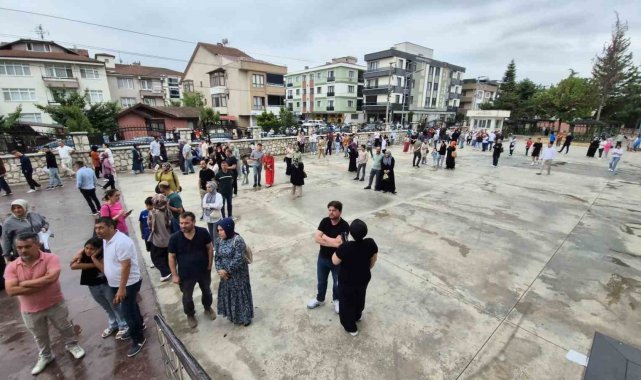 Düzce'de öğrenciler okullarda ter dökerken, anne ve babalarda okul çevresinde bekledi. Veliler okul bahçesinde çocukları için dualar okuyarak destek oldular.