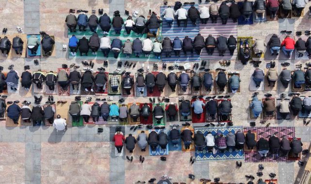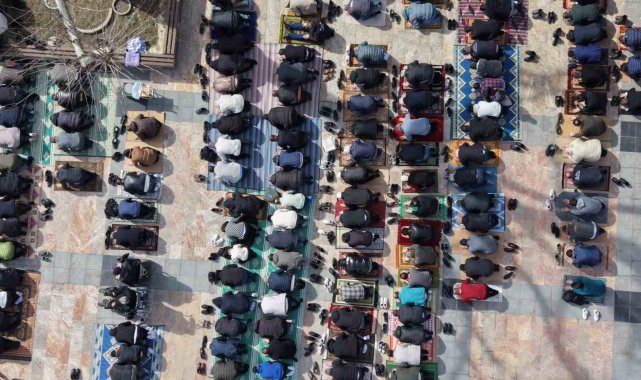 Öte yandan, Düzcelilerin Ramazanın ilk cuma namazı için cami avlularını ve bahçelerini doldurduğu o anlar dron ile havadan da kaydedildi.