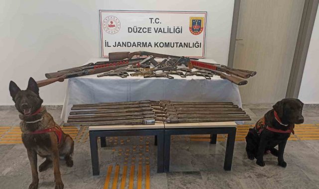 Düzce Cumhuriyet Başsavcılığı koordinesinde İl Jandarma Komutanlığı tarafından silah ve mühimmat kaçakçılığı operasyonu yapıldı. Jandarma ekipleri tarafından silah mühimmat kaçakçılığı yapıldığına dair alınan istihbarı bilgiler üzerine yapılan çalışmada Merkez ilçe Çay Mahallesi'nde U.A. isimli şahsın ruhsatsız iş yerinde arama yapıldı. Yapılan aramada 7 adet ruhsatsız tabanca, 7 adet ruhsatsız av tüfeği, 9 adet el yapımı ruhsatsız tabanca gövdesi, 9 adet el yapımı ruhsatsız tabanca namlusu, 107 adet tekli tüfek namlusu, 51 adet çiftli tüfek namlusu, 2 adet üçlü tüfek namlusu, 2 adet havalı tüfek namlusu, 3 adet tabanca şarjörü, 257 adet sürşarjlı test fişeği, 77 adet tabanca fişeği, 1 adet torna makinesi, 2 adet sanayi tipi matkap, 1 adet pulanya makinesi, ve 1 adet pim tezgahı ele geçirildi.