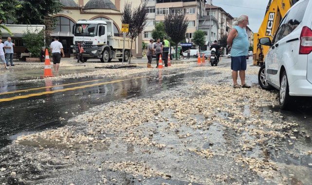 Düzce'de su borusu patladı: 5 metre su fışkırdı