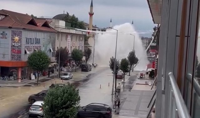 Düzce'de ana su borusunda patlama meydana geldi. 5 metre suyun fışkırdığı bölgede birçok araç ve işletmeyi su basarken sokaklar göle döndü.
