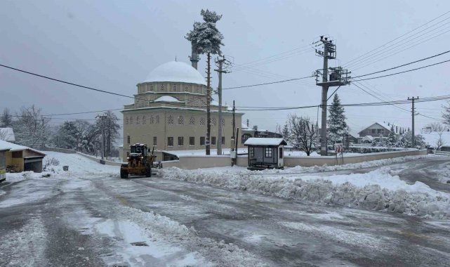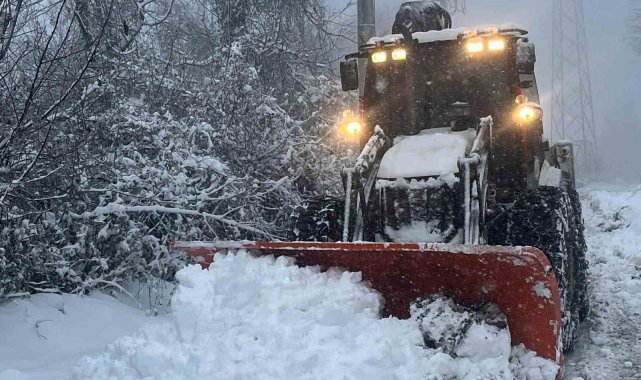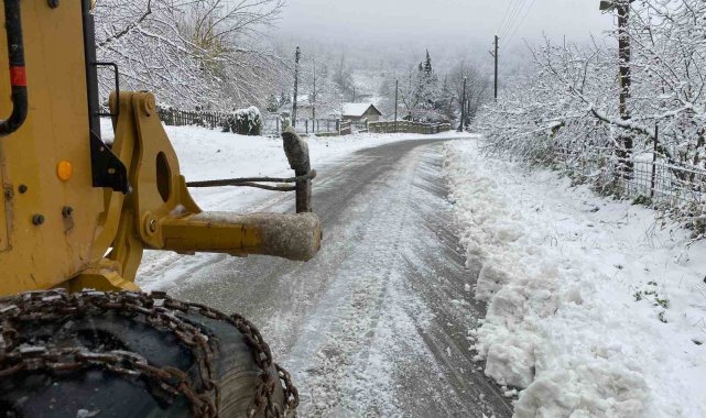 Düzce'de gece saatlerinde etkili olan kar yağışı ile beraber bazı köy yolları kapandı. Ekiplerin zamanında müdahalesi ile yollar hemen trafiğe açıldı.