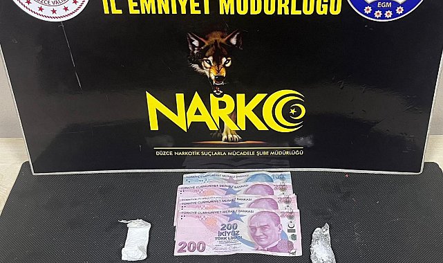Düzce Cumhuriyet Başsavcılığı koordinesinde Narkotik Suçlarla Mücadele Şube Müdürlüğü ekipleri tarafından Konuralp Orhangazi Mahallesinde bir şahsın uyuşturucu madde ticareti yaptığı tespit edildi. 4 ayrı suç kaydı olan H.U (27) isimi şahsa yönelik düzenlenen operasyonda; 2 parça halinde 5 gram metamfetamin maddesi, 1 gram sentetik kannabinoid maddesi ve suçtan elde edildiği değerlendirilen 900 lira nakit para ele geçirildi. Gözaltına alınan H.U isimli şahıs çıkarıldığı mahlemece tutuklanarak cezaevine gönderildi.