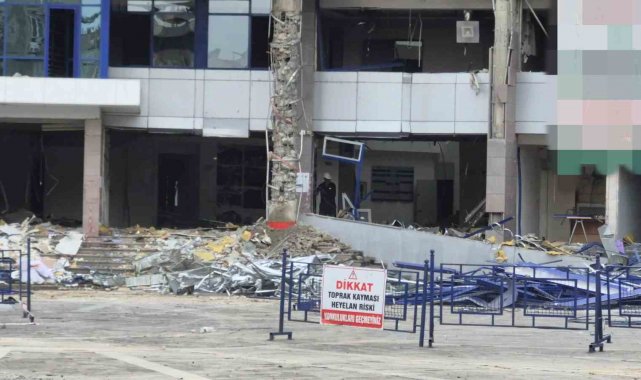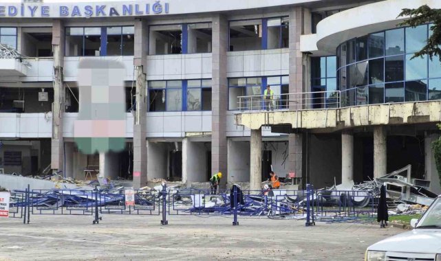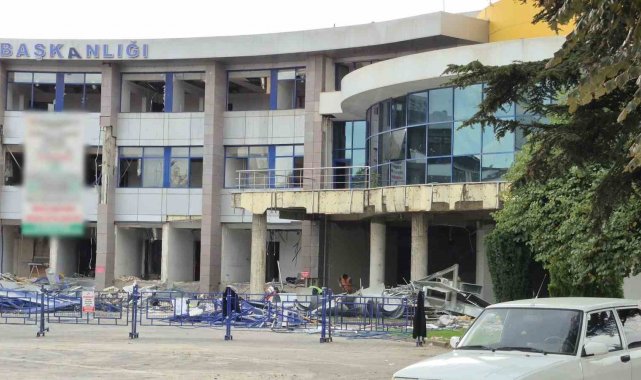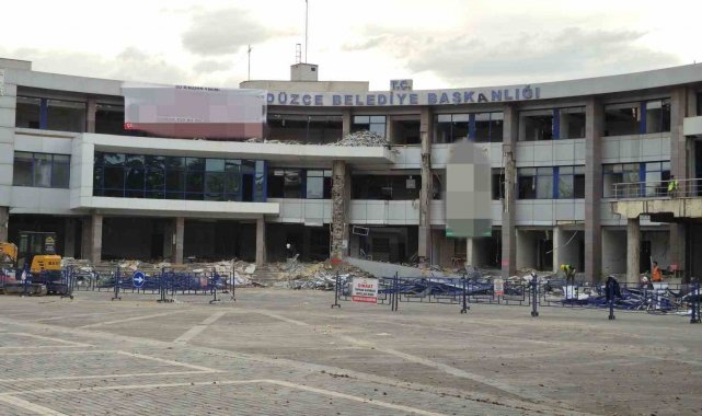 Düzce'de yıkım çalışması süren belediye binasında yangın