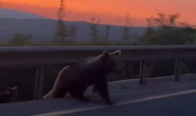 Düzce'de yol kenarında boz ayı ve yavruları görüntülendi