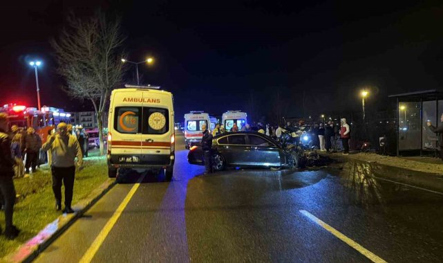 Edinilen bilgilere göre, seyir halindeki lüks otomobil halk otobüsüne çarptı. Çarpmanın etkisiyle araçlarda maddi hasar oluşurken, otobüste bulunan yolcular panik yaşadı. Kazayı gören bir restorandaki müşteriler ve çalışanlar olay yerine koşarak, yaralılara yardım etti. Vatandaşlar sağlık ekipleri gelene kadar kazazedelere müdahalede bulundu. Yaralılar, olay yerine gelen ambulanslarla hastaneye kaldırıldı. Kaza anı güvenlik kameralarına da saniye saniye yansıdı.