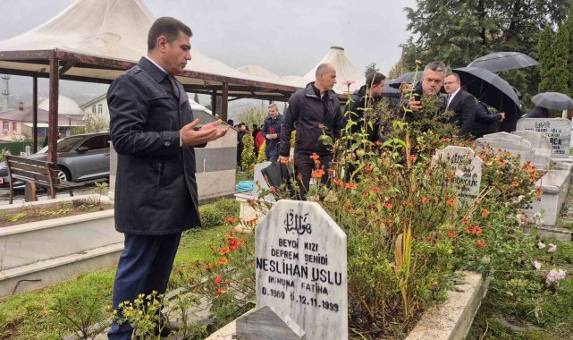 ı Kerim okunmasının ardından protokol üyeleri ve vatandaşlar depremde vefat edenlerin kabirlerine karanfil bıraktılar.