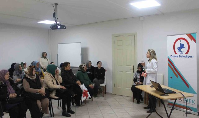 DÜZCE(İHA) – Düzce Sağlık Müdürlüğü sağlıklı hayat merkezi ekipleri Düzce Belediyesi Meslek Edindirme Kursuna (BELMEK) giden kadın kursiyerlere ağız ve diş sağlığı eğitimi ile diş taraması yaptı.